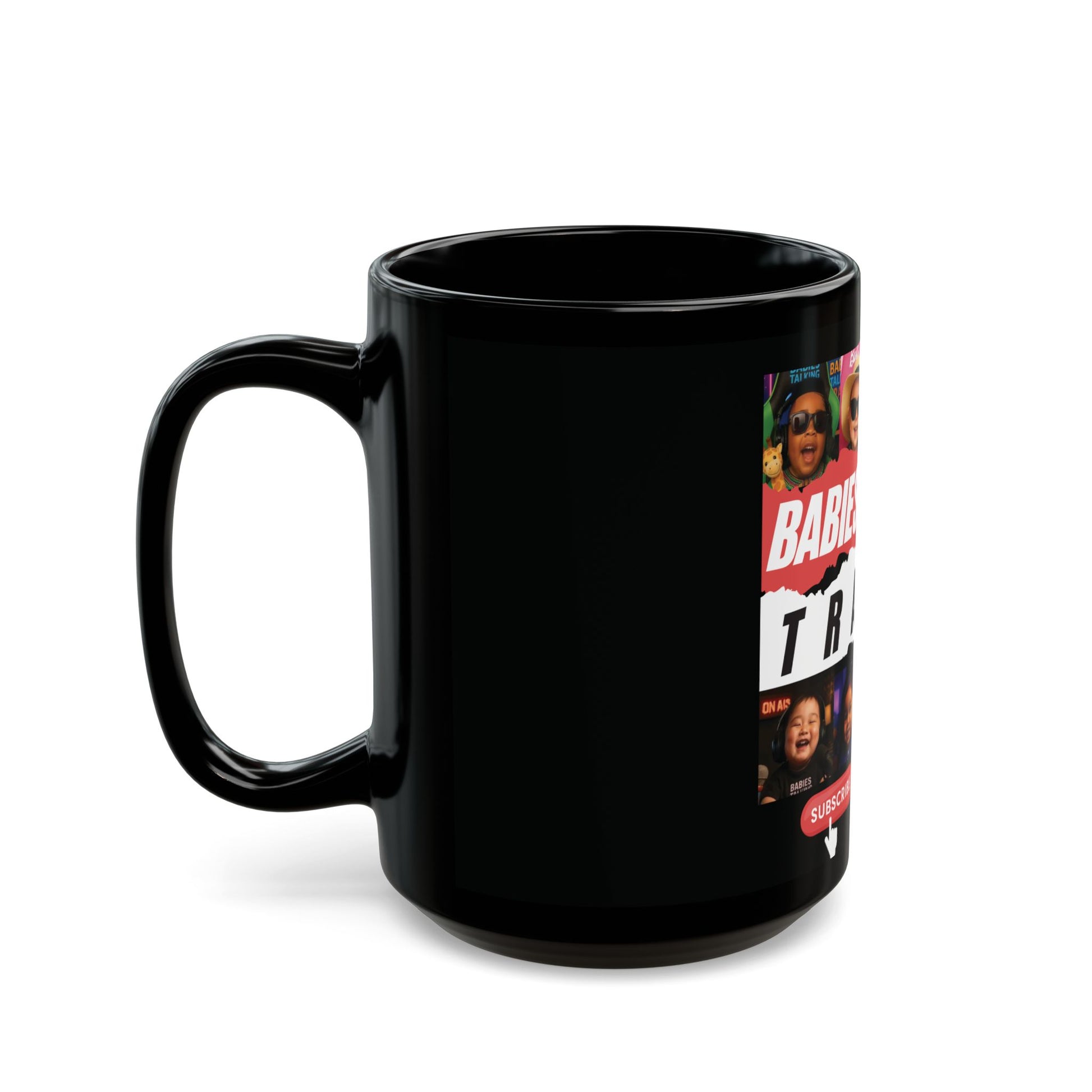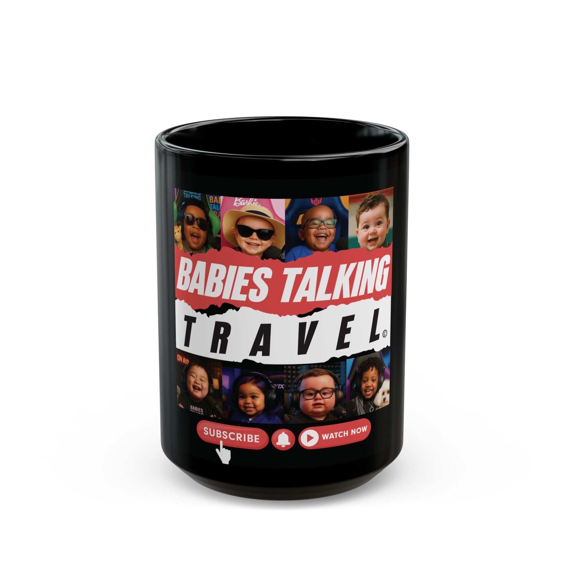 Babies Talking Travel - Characters Panel #2 Black Mug (15oz).