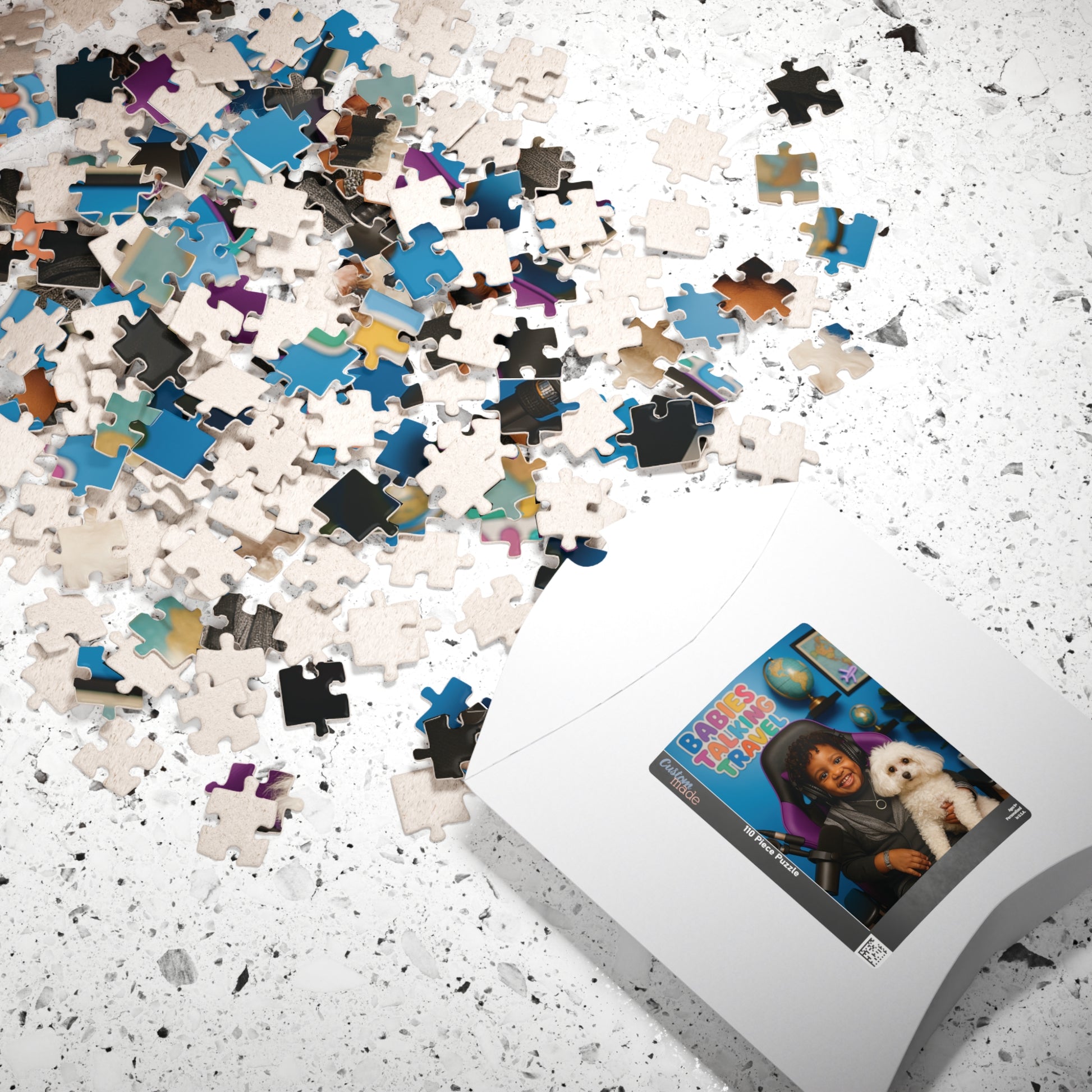 Get ready to giggle while you puzzle! The Babies Talking Travel 110-Piece Puzzle brings our outrageous Babies Charters crew straight to your coffee table. Each piece snaps together to reveal the baby podcasting chaos you know and love—complete with sippy cups, neon podcast signs, and travel shenanigans only Babies Talking Travel could dream up.