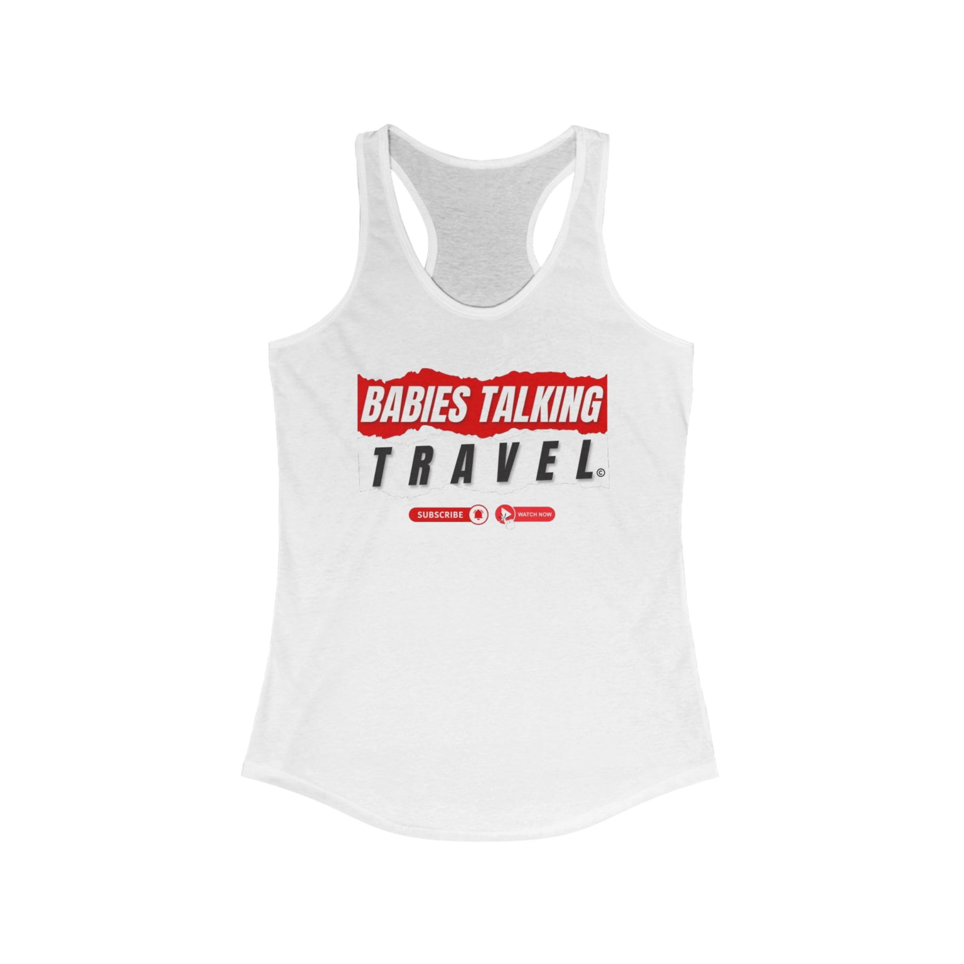 Babies Talking Travel – Women’s Racerback "White" Tank (Channel Logo Edition).